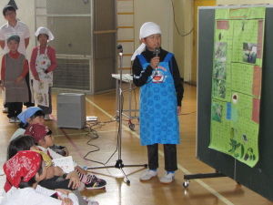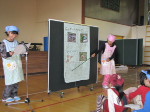 観察記録発表会では子どもたち一人一人が自分が育てた野菜について模造紙や紙芝居形式にまとめて発表しました。