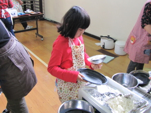作った料理は観察記録発表会の後、昼食として来場者含む全員で食べました。