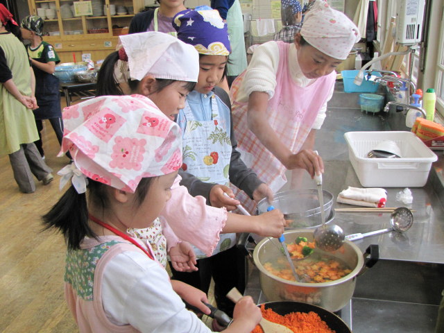 収穫祭当日、子どもたちは1校時から調理をし始めました。