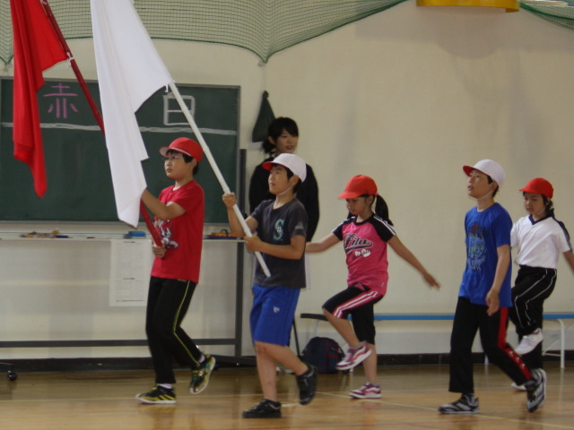 当日はあいにくの空模様で、最後まで悩んだのですが体育館で運動会を開催しました。