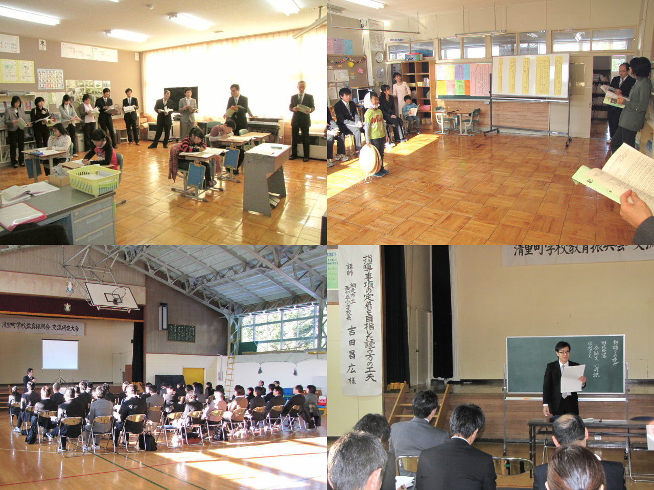 町内小中学校の教職員、町教育委員会の方々が集まり、本校の授業や研究の様子をご覧頂きました。