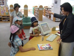 図書館の方に、どこにどんな本があるか教えていただき