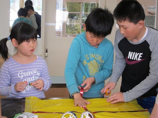 昨日4月21日には、こいのぼりづくりを行いました。学年ごとではなく、掃除や給食準備を行う「縦割り班」での作成となりました。ラピーテープで自分たちの名前を書いたり綺麗な鱗を描いたり、星やイチゴなどかわいい模様を描いたり…。みんな思い思いのこいのぼりに仕上げていました。このこいのぼり達が空を泳ぐのは5月2日から。どんなこいのぼりに仕上がっているのか、楽しみにしていてください!
