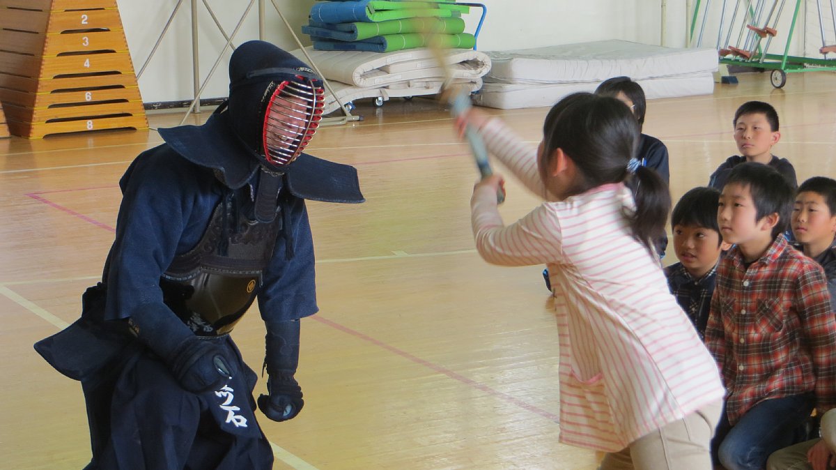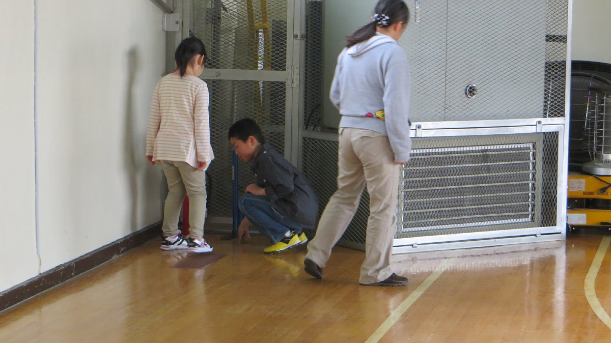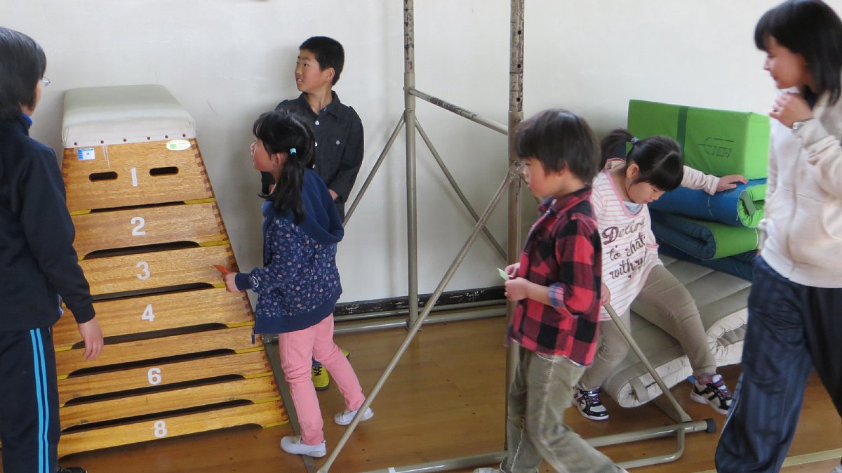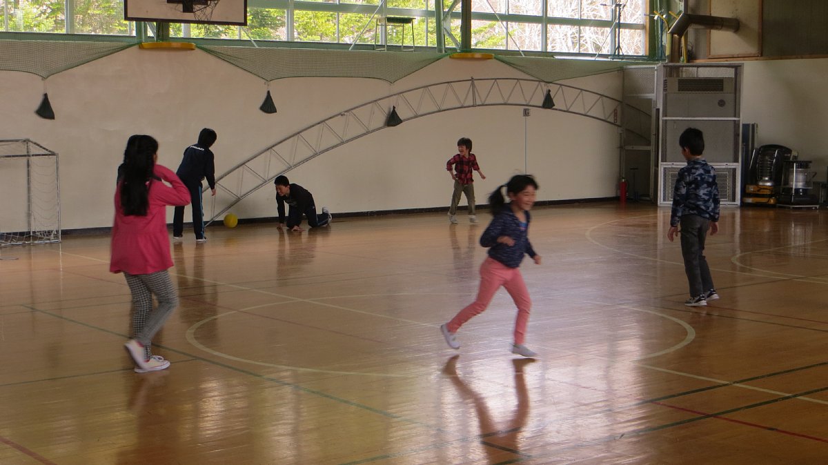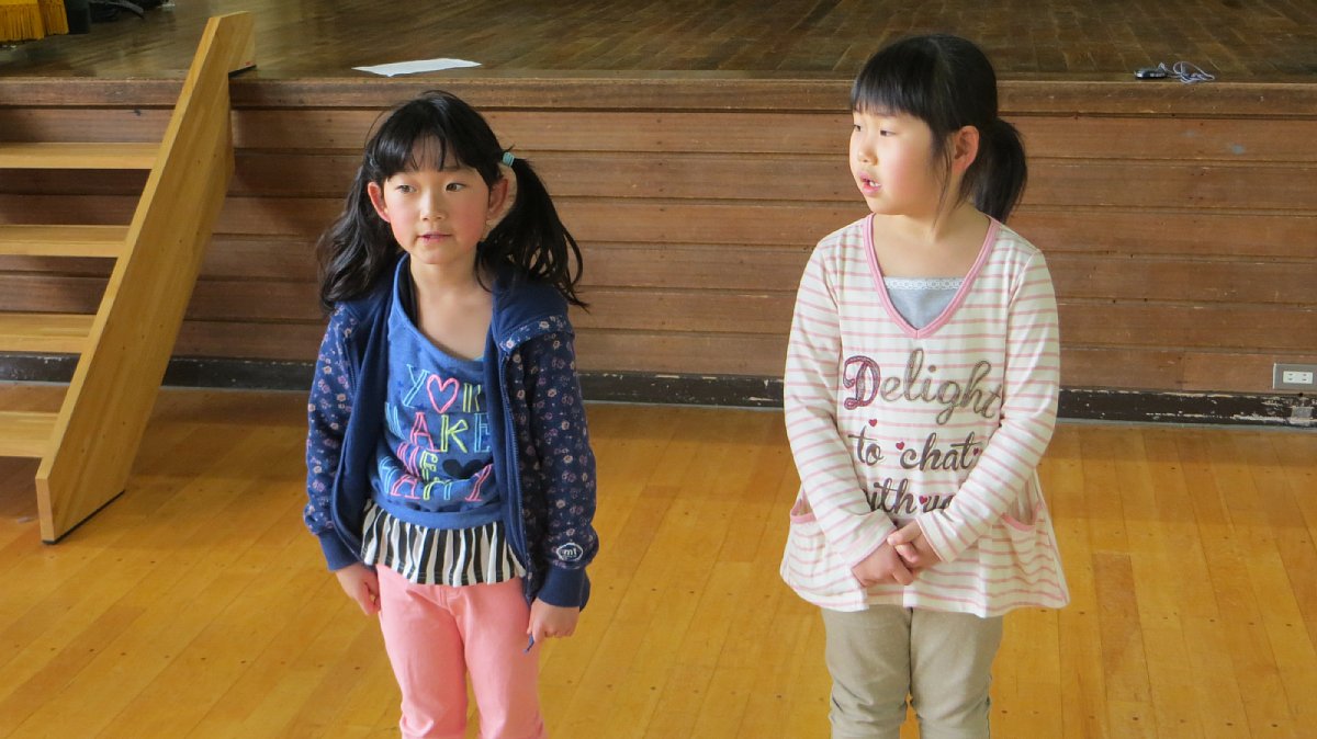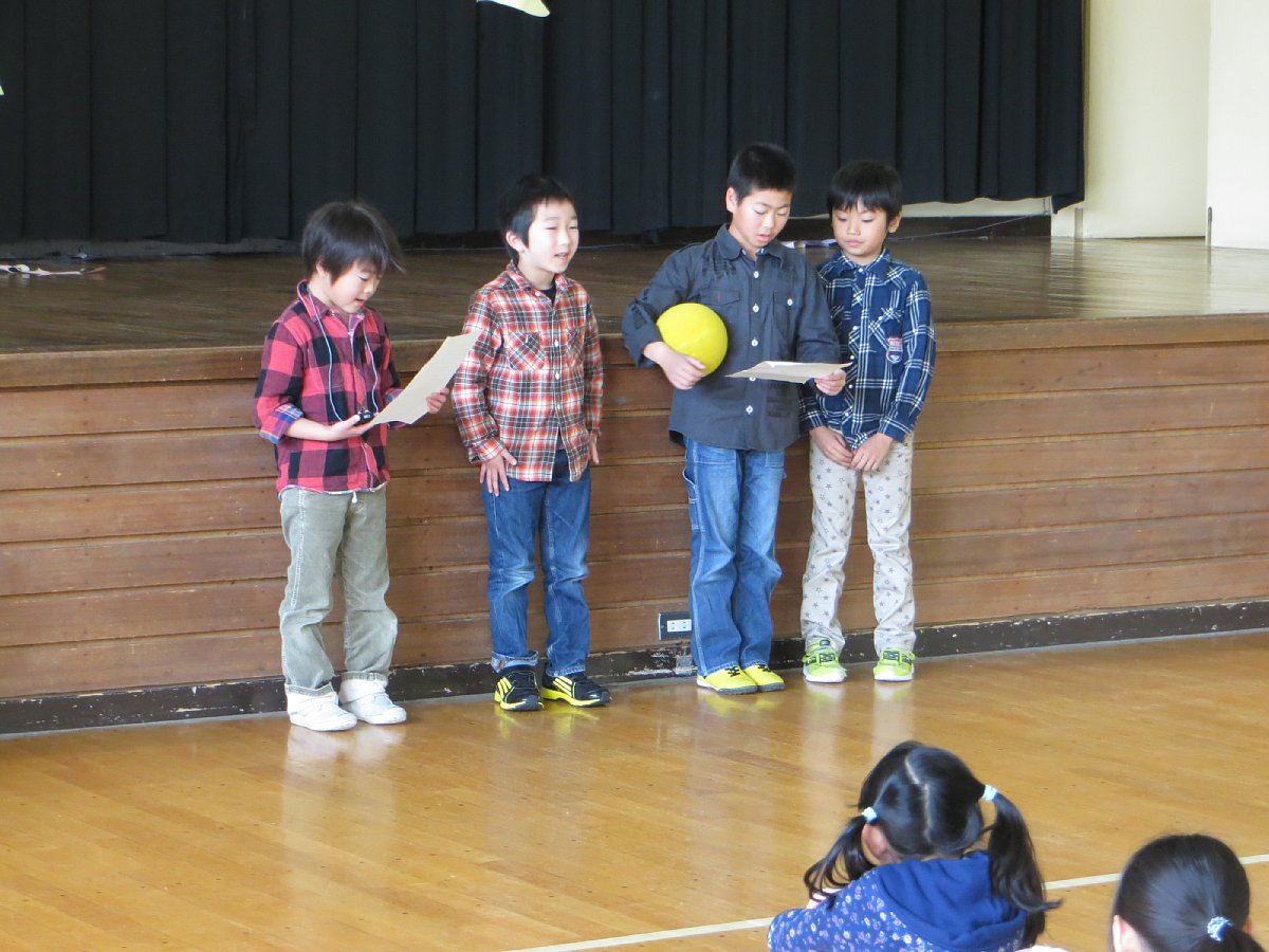 今日の3校時には、1年生を迎える会が行われました。 児童会会長のあいさつから始まり、2・3・4年生が企画したボール鬼が行われました。 鬼からボールをぶつけられた人が次の鬼になります。みんなボールをぶつけられないように必死に逃げ回り、楽しんでいました。 次は5・6年生の劇です。「登下校の際に気を付けてほしいこと」を劇にして1年生に伝えました。一つ目は「元気よく挨拶をしよう」、二つ目は「道路に飛び出さない」、そして三つ目は「知らない人にはついていかない」。 1年生にもわかりやすいようにゆっくりとセリフを言ったり身振り手振りを入れて説明したりと、工夫をしていました。1年生も、真剣に見ていたようです。 劇の後は、「宝探しゲーム」。1~4年生と先生方が3つのチームに分かれて、体育館の中にある宝物カードを探しました。こちらも「1年生が楽しめるように」と、見つけやすいところにカードを置いたり、チームの組み合わせを工夫したりと、5・6年生が頑張ってくれました。 お姉さん、お兄さん達からの出し物が終わった後は、1年生からの感想です。二人の1年生は、ゆっくりと言葉を選びながら、今日の感想をしっかりとお話しすることができました。二人とも、楽しんでくれたようです! 最後にはサプライズ!校長先生からのお話で、なんと校長先生が剣道の防具をつけて登場しました!目の前で見る竹刀の素振りと気合の入った掛け声に、みんなびっくり!その後、実際に竹刀を握って校長先生に面を打ち込む体験もさせてもらっていました。おっかなびっくり叩いたり、良い音を立てて思いっきり叩いたり…。みんな、良い経験をさせていただきました。
