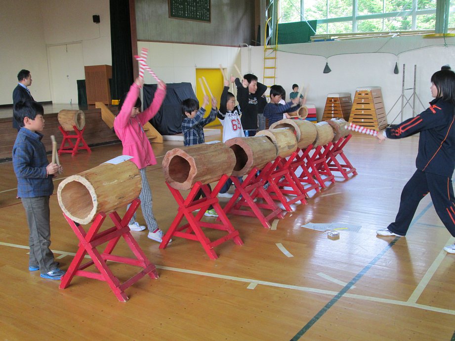 本日の2校時目に、クマゲラ太鼓の練習を行いました。5月25日(日)に行われる「みどりのフェスティバル」での演奏に向けての練習です。