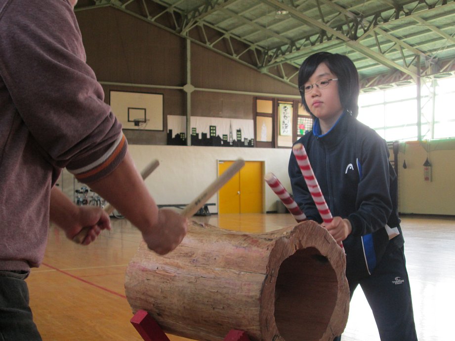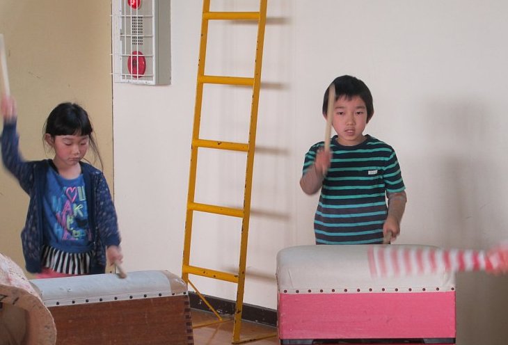 今年のクマゲラ太鼓は、昨年までのものと少しリズムや叩くパターンを変えています。これまで経験してきている子たちも、新しいパターンを覚えるのに一苦労。今年初めて触る子たちも、一定のリズムで太鼓をたたくことの難しさに悪戦苦闘していました。ですが、誰一人あきらめることなく一所懸命に練習に取り組んでいました。