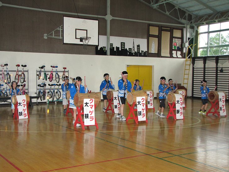 式典では、参加者全員による校歌斉唱、ご来賓の方々からの祝辞、そして緑町小児童によるクマゲラ太鼓の演奏などが行われました。