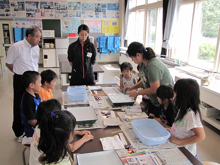 5校時目は、低中高それぞれのクラスに分かれての学習となりました。低学年はマーブリング、中学年は明日行われる合同の社会科見学についての話し合い、そして高学年は先日行われた宿泊学習の作文発表と、バラエティに富んだ内容となりました。