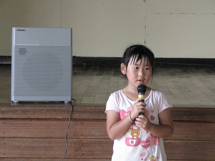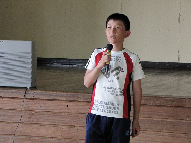 最後に体育館で閉会式を行いました。一人一人がキャンプの感想を発表しました。初めて挑戦したこと、成功してうれしかったこと、これからの生活の中で活かしていきたいこと等、ただ楽しかっただけではなくその中からたくさんのことを学び取ったということがわかる発表となりました。