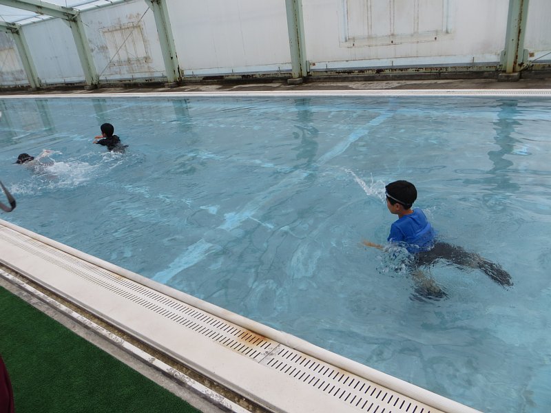 「服を着たままプールに入る」という経験は今までしたことのない子ども達。「思ったよりもうごきやす~い」「あ、でも泳いでみたら泳ぎづらい!」といった感想を漏らしていました。