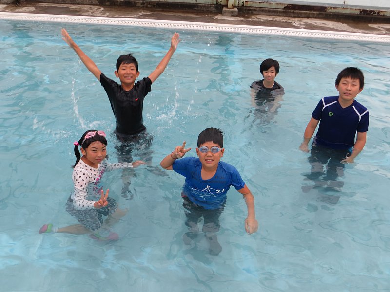 6時間目終了後、5・6年生が着衣水泳の体験を行いました。外は小雨がパラついていましたが、プールの中は室温、水温共に十分にありました。プールの中に入っている方が暖かいくらいでした。