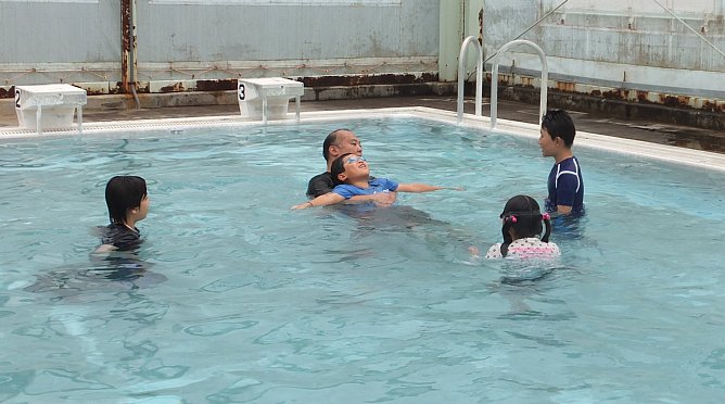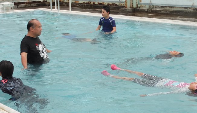 おぼれている人がいた場合は無理に近づかないこと。おぼれている人は必死になって暴れるので、助けようとして近づくと巻き込まれて一緒のおぼれてしまう場合があるからです。そういった場合は近くの大人の人や消防、警察などにすぐ助けを求めるんだ、ということを子ども達に指導しました。