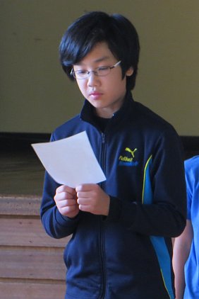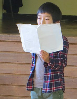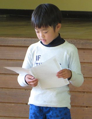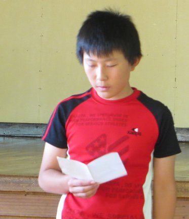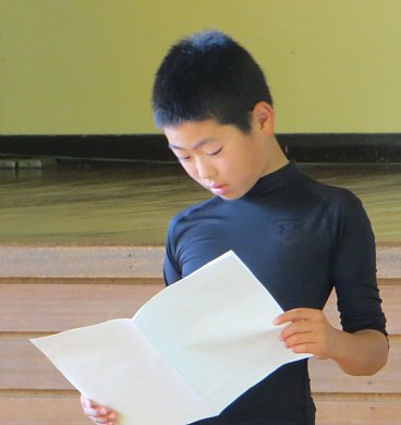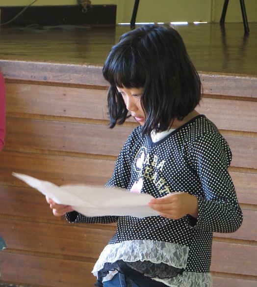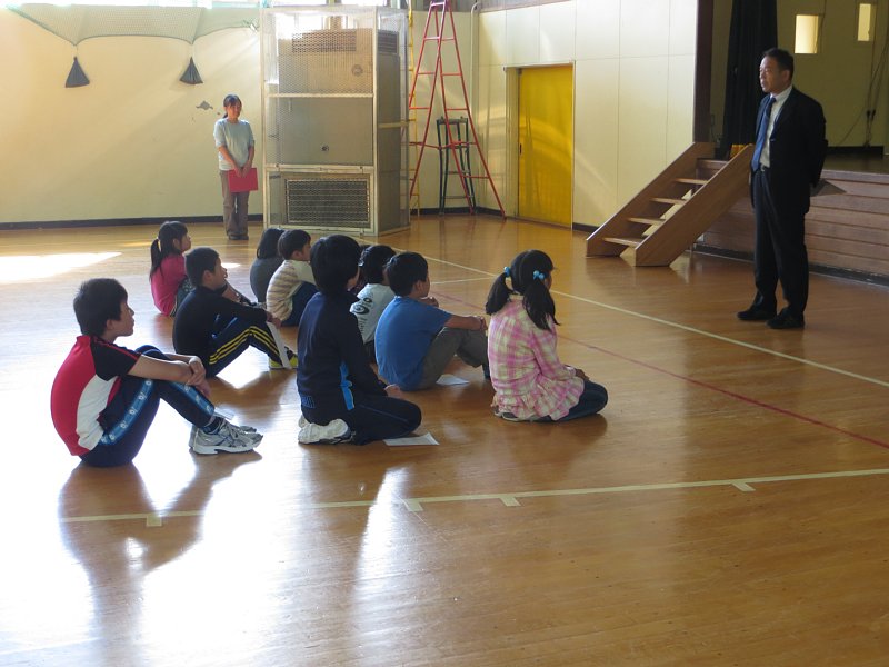 元気に校歌を歌った後、学校長から子ども達に向けて「あきらめないで努力し続けることの大切さ」についての話がありました。子ども達は真剣な顔でその話を聞いていました。