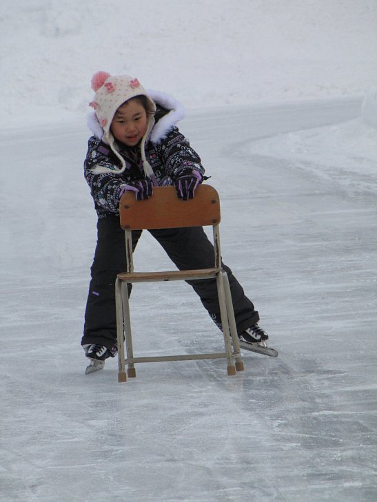 椅子を支えにしながら必死に滑る子、ふらつきながらもバランスを取りながら滑る子、転んでもあきらめずに立ち上がり、滑り続ける子、そして1秒でも早く滑ろうと必死になって滑る子…。