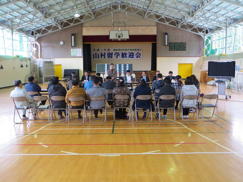 全校授業参観の後は、緑町小体育館にて山村留学推進協議会総会、PTA総会、そして山村留学生歓迎会が行われました。毎年、緑センターで行われていたのですが、今年は地方統一選挙の投票日と日程が重なってしまい、緑町小で行われることとなりました。
