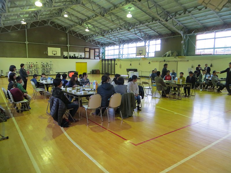 その後は参加された皆さんで和気あいあいとした会食が行われました。場所が体育館ということもあり、食事を済ませた子ども達は勝手知ったる何とやら、中学生も交えて元気に遊びまわっていました。
