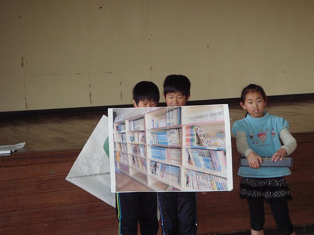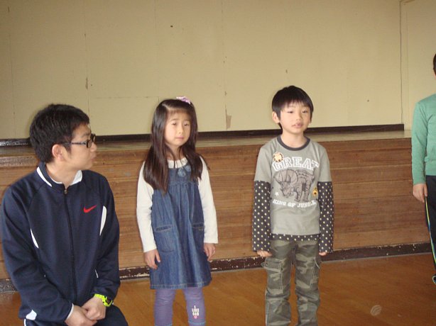 2~4年生からはあいうえおクイズ。子ども達のジェスチャーをみて、それが何かを当てるクイズですが、例えば「い」から始まる言葉、といったヒントを出してそれを基に考えてもらう、というもの。