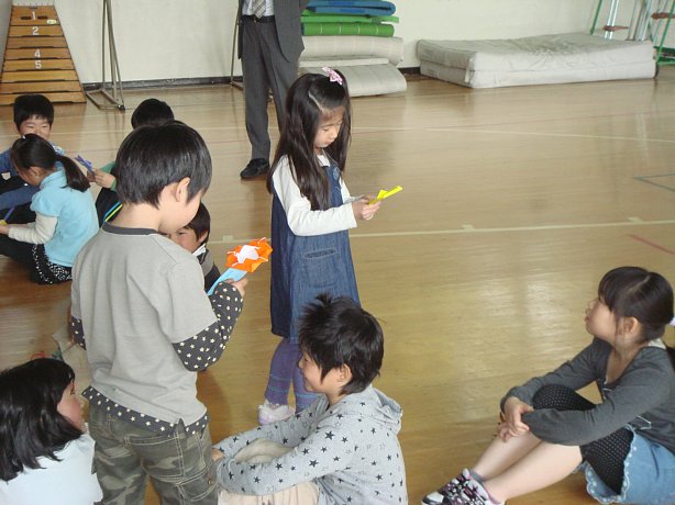 正解者には5・6年生の子達が折った折り紙をプレゼント。正解した子達はどれがいいかなぁ~と、楽しみながら選んでいました。