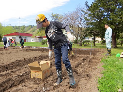 6年生はジャガイモを植えました。