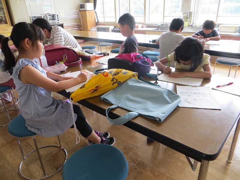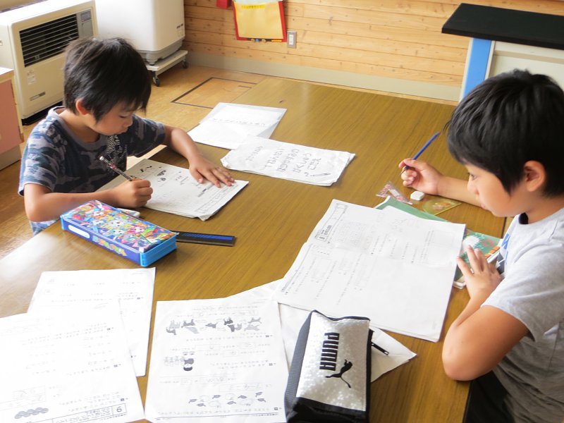 今日は11名中9名の子ども達が学習会に参加。夏休みの宿題を持って来たり、自主学習や夏休みの自由研究を持ってきたりと、思い思いの課題に取り組んでいました。