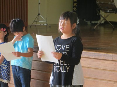 さて、本日出席していた子ども達は8名。それぞれ1学期の反省と、2学期の目標を発表しました。夏休み前集会で子ども達がみんなの前で夏休みの目標を発表したのが2ヶ月程前。その時の発表に比べると、声も大きく、聞き取りやすい速さで発表することができました。たった2ヶ月程ですが、子ども達の成長を感じました。 2学期のスタートは9月30日(水)です。風邪気味で花がグズグズ、咳がゴホゴホ…という子もいました。短いですが、秋休みの間に体調を整え、元気に2学期のスタートを切ってもらいたいと思います。1学期、お疲れ様でした! (文責:すずき) PR コメントを投稿する