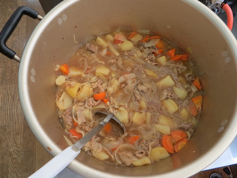 出来上がった肉じゃがは、給食時間に他の学年の子達や職員にも食べてもらいました。みんな、美味しいと言って食べてくれました!