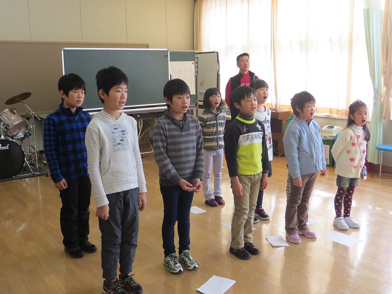 まず始めに校歌を元気よく歌いました。久しぶりに歌う校歌でしたが、みんな口を大きく開けて歌っていました。