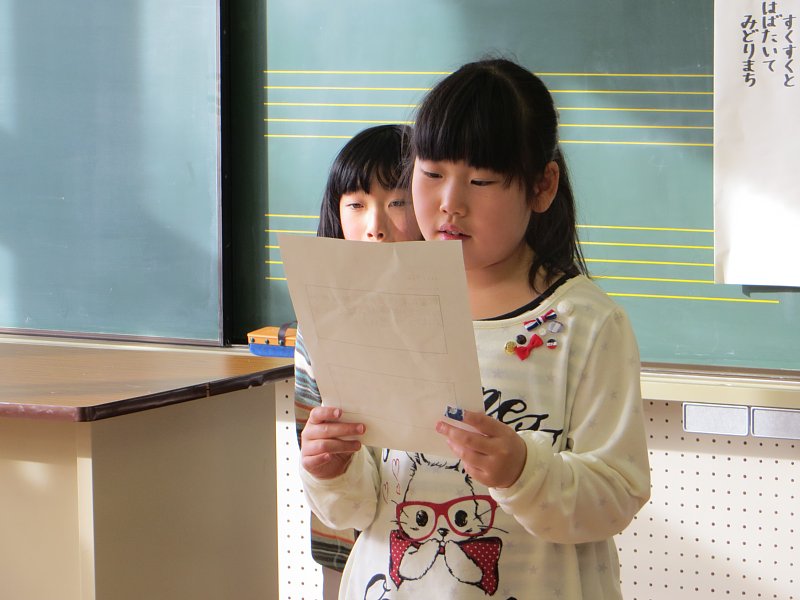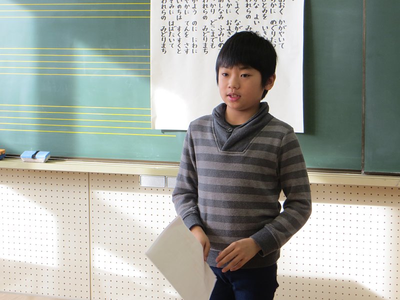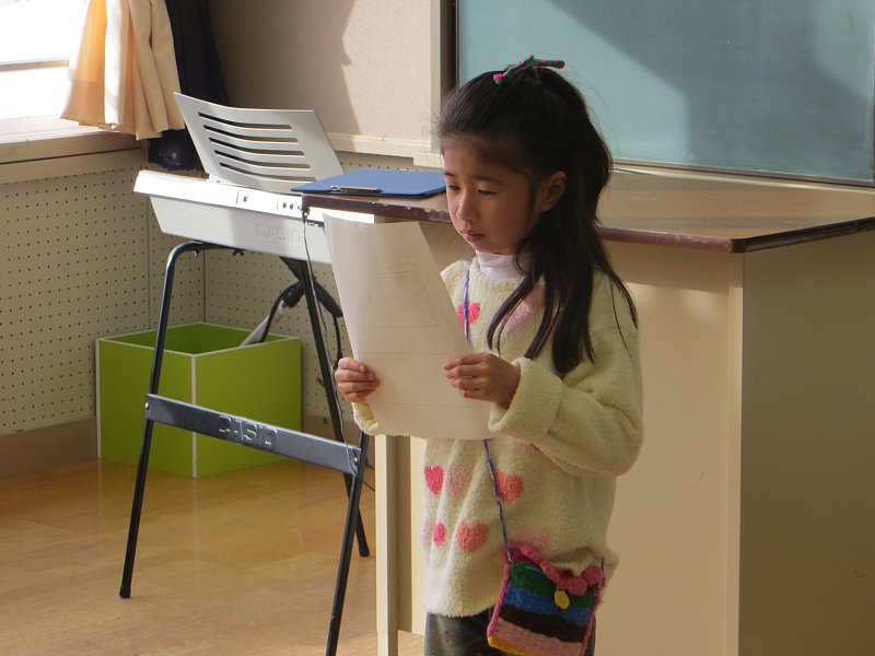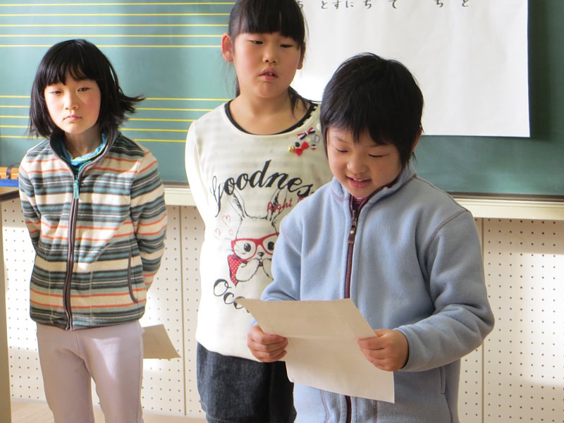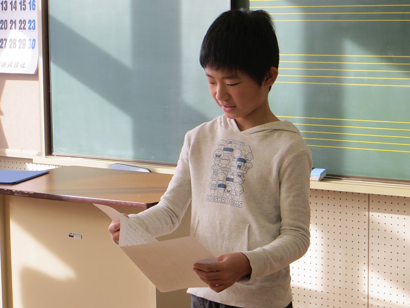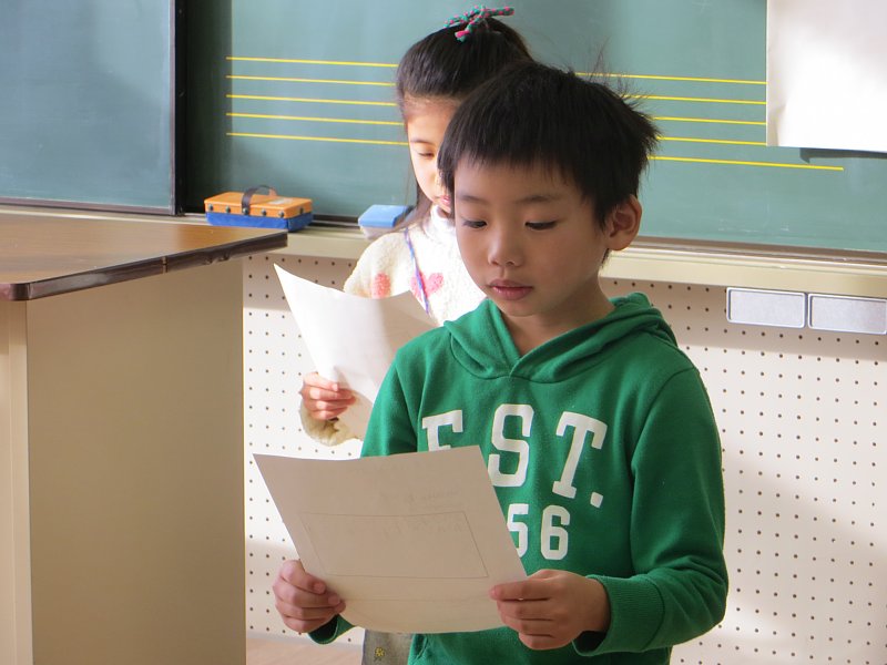 また、「~に旅行に行きました。」「ワカサギ釣りに行ってきました。」等、休み中の思いでも、発表していました。