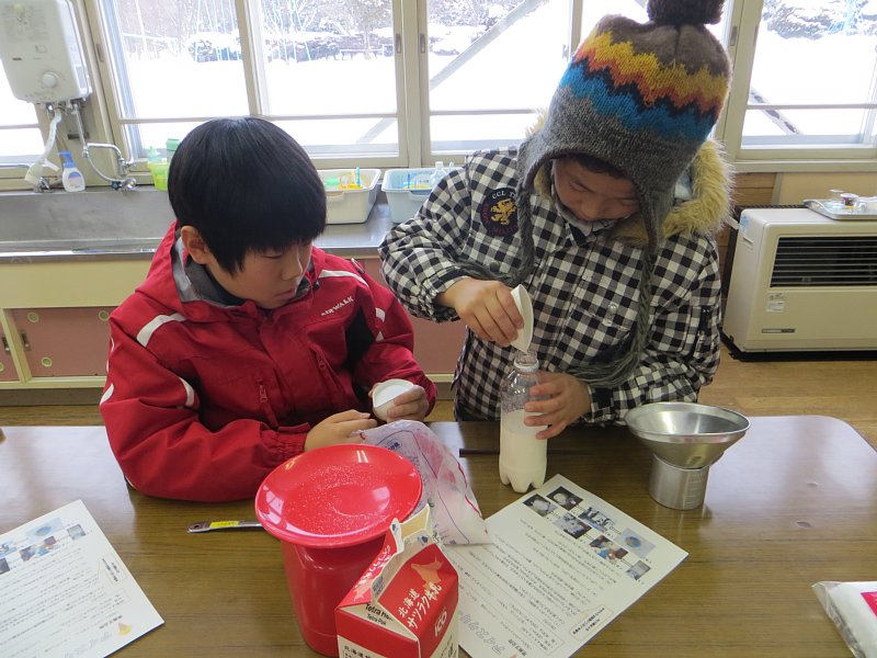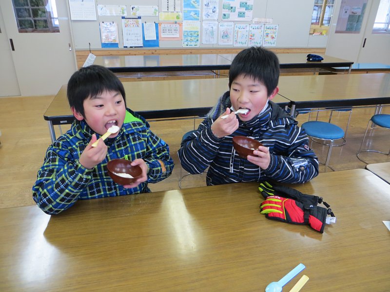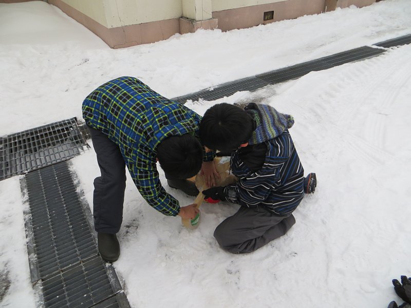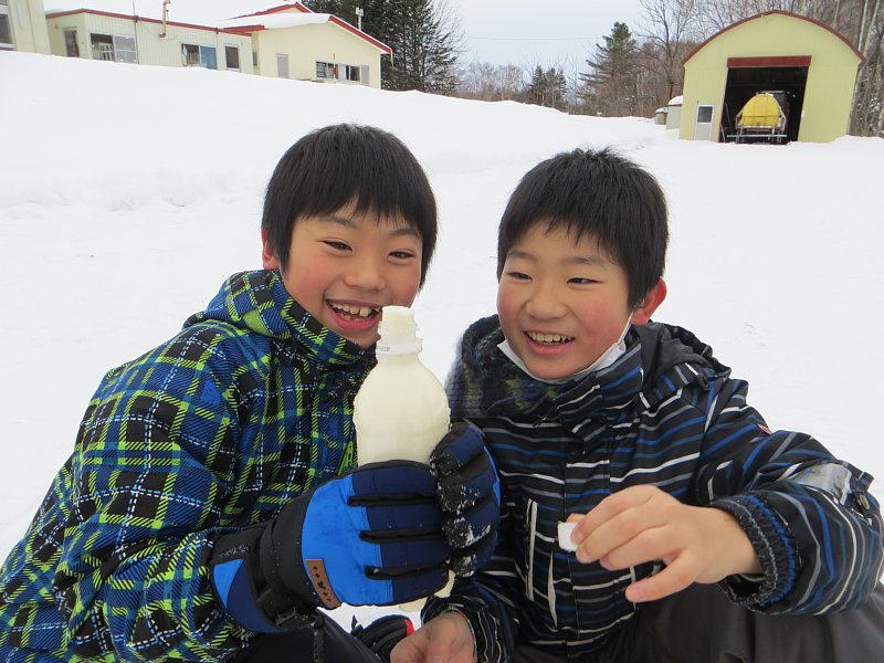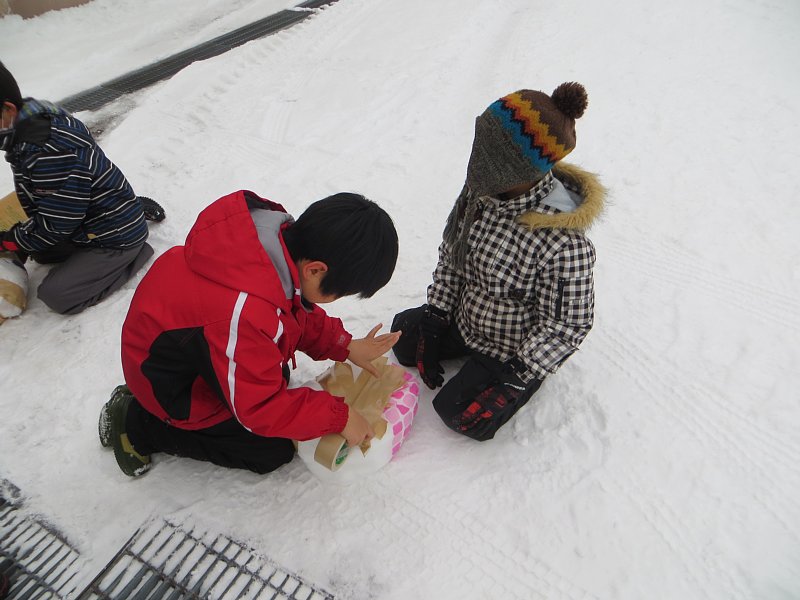 さらに、18日(月)の6校時にクラブを行いました。今回の内容は雪遊びという事だったのですが、ただの雪遊びなら普段からやっている…と言うことで、雪遊びをしながらアイスクリームを作ろう!ということになりました。