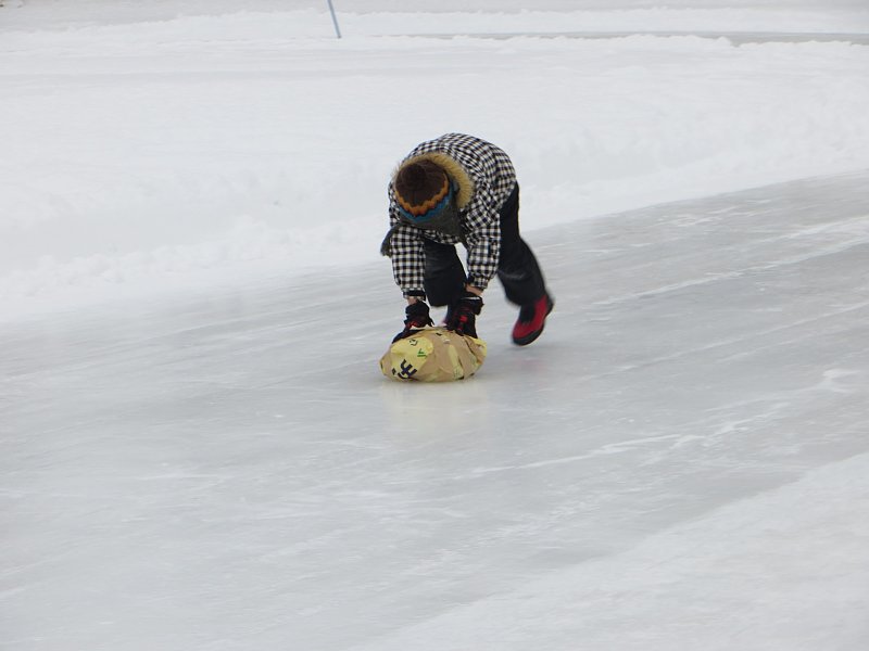 ③出来上がったものを使って投げたり蹴ったり転がしたり…。とにかくペットボトルの中身がシャカシャカと揺れ動くようにしながら遊びます。今回はスケートリンクでカーリングのように転がしたり、放り投げてキャッチボールをしたりしながら遊びました。