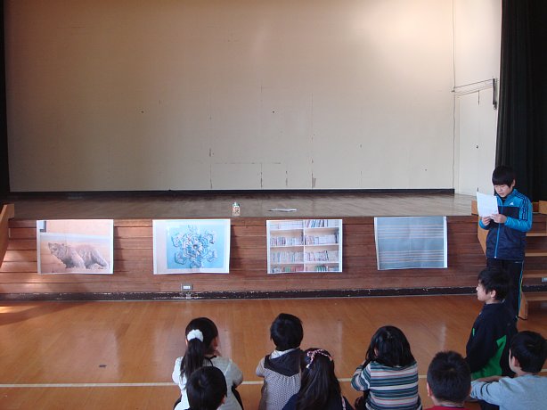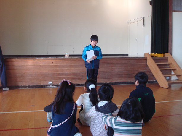 2校時に体育館にて歓迎のレクを行いました。このレクは5・6年生が企画したもので、写真に写された場所が校内のどの場所なのかを探すゲームです。子ども達は二人一チームになり、学校中を捜し歩きました。正解したチームには5・6年生が作った紙飛行機がプレゼントされ、体育館の中でみんなで飛ばして遊びました。