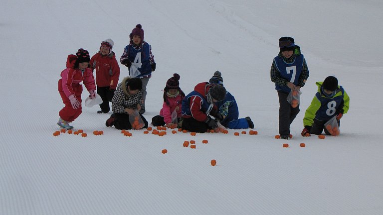 最後は、みんなでみかんひろいをしてスキー大会を終了しました。