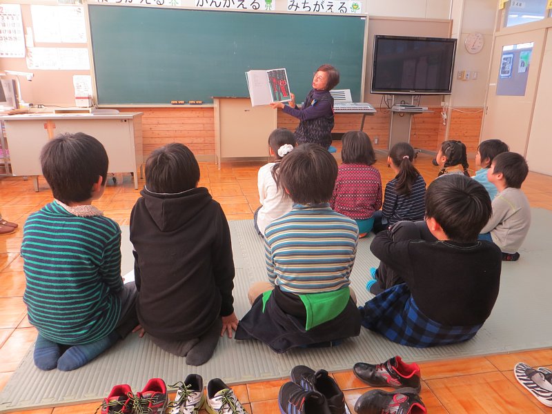 本日の3校時には、清里町の読みかせの会の方々をお招きして、読み聞かせ会をおこないました。次年度入学してくる、新1年生を交えての読み聞かせ会。今日は4名の方に来ていただき、「金のりんご」「おおかみくん」「わがはいはのっぺらぼう」「おんちょろきょう」の4冊を読んでいただきました。子ども達は真剣な眼差しで絵本を見つめ、ときに笑いながらときに疑問をぶつけながらお話をたのしんでいました。