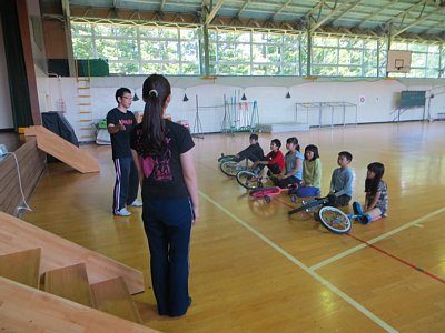 今回、講師をお招きしてのこの講習会ですが、補助なしでは乗れなかった子が補助なしで乗れるようになったり、アイドリング(車輪を前後に動かしながらその場に留まる乗り方)が苦手だった子ができるようになってきたり、子ども達が一輪車に乗る姿勢が良くなったりと、わずか2時間ではありましたが、子ども達がめきめき上達していくのが分かりました。