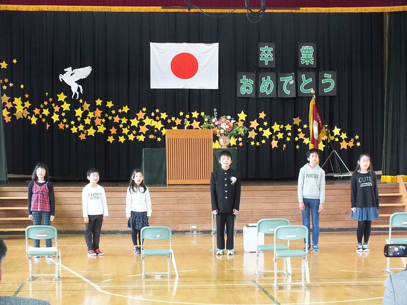 今年は、1名の6年生が本校を旅立ちました。今年1年、たった一人の6年生として、下級生の面倒を見たり、率先して手伝いをしてくれたりと、リーダーとして大活躍をしてくれました。そんな6年生が、小学校生活の最後見せてくれた、堂々とした姿。在校生の子達には、この姿を目に焼き付けておいてもらいたいと思います。中学校に行ってもがんばってくださいね!