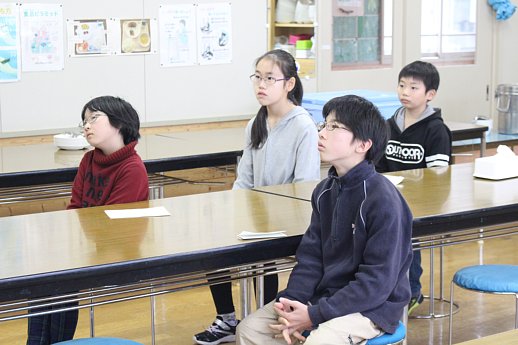 本日の4校時目に、冬休み前集会を行いました。1・2年生4名は体調不良のため、また4年生1名は所用により欠席のため、集会に参加した児童は4名となりました。