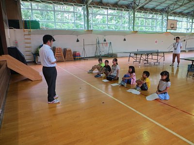 学習会は10時半で終了。その後は、希望する児童がプールで遊びました。今日はプール開放の日ではないのですが、体力づくりの一環として、学習会に参加した児童はプールも使えますよ、としていました。今日は2名の児童がプールを広々と使って遊んでいました。