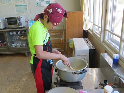 そしてご飯はもう一人の3年生が担当。美味しいご飯を炊くことができました。