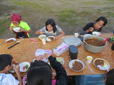 自分たちで作ったご飯を、外で食べると、ますますおいしく感じますね。