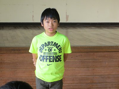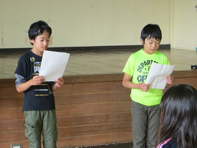 最後には体育館で閉会式。一人ずつ、二日間の感想を発表してキャンプが終了しました。