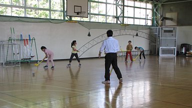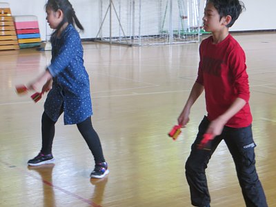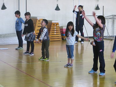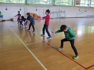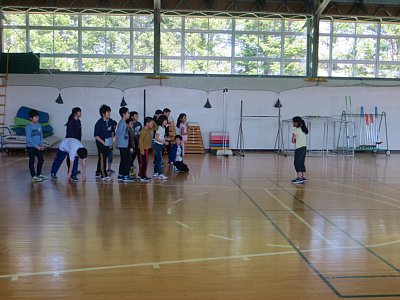 4校時目には体育館でレクリエーションを行い交流を深めました。
