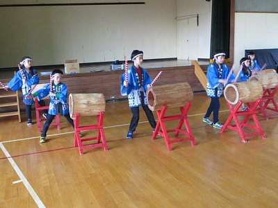 1・2年生は音楽の授業。「春が来た」をみんなで歌った後、音楽鑑賞で、組曲「動物の謝肉祭」を聴きました。